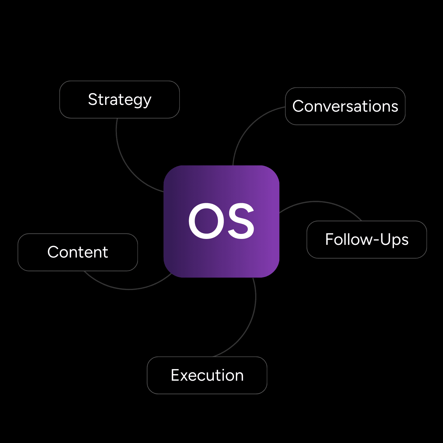 Your strategy, conversations, content, follow ups, and execution live in one place. Nothing important gets lost.